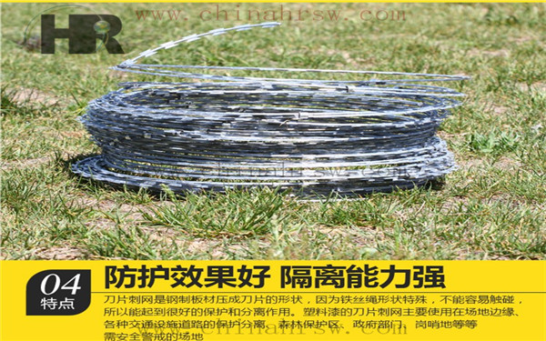 刀片刺繩在運輸過程中要注意防水,我們生產(chǎn)熱鍍鋅刀片刺繩材質(zhì):優(yōu)質(zhì)低碳鋼絲、 鍍鋅絲、高碳鋼絲等加工而成的。因此在運輸過程當中特別要注意防水防潮,做到保管到位,確保萬無一失,到達目的地后,需方要提供良好的避雨防潮措施,因為,帶包裝的刀片刺繩一旦遇雨遇潮,不透氣的原因很可能導致生銹,給雙方帶來不必要的麻煩和損失。